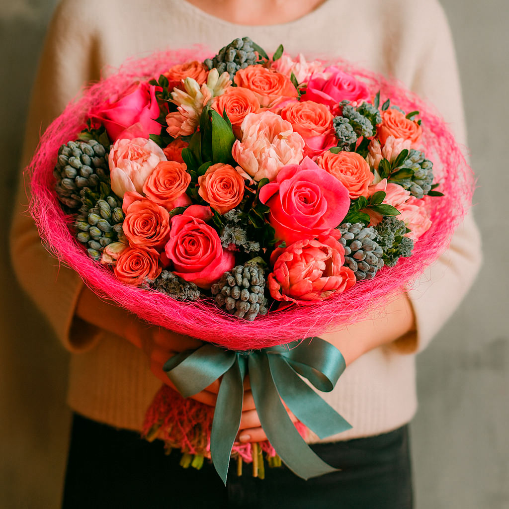 Мы используем только свежие цветы, которые поступают в магазин напрямую с плантаций и оранжерей. Каждый букет собирается вручную опытными флористами.