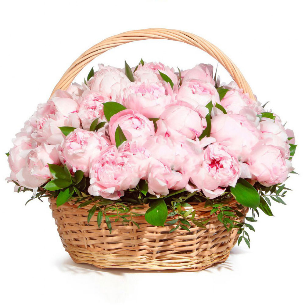 Розовые пионы в сочетании с фисташкой создают нежную и романтичную атмосферу. Цветы расположены в плетёной корзине, которая добавляет естественности и уюта. Альтернативно можно оформить в корзине из ротанга или с тканевой отделкой. Прекрасный подарок для любимой на годовщину или свадьбу.