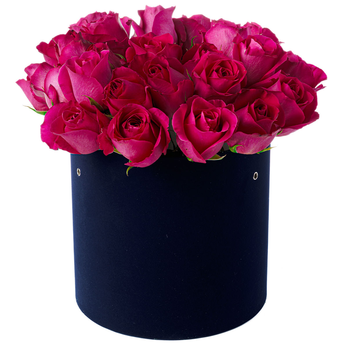 Роскошные розовые розы в шляпной коробке создают атмосферу нежности и изысканности. Бархатная коробка глубокого синего цвета подчеркивает яркость цветов. Возможны варианты оформления в атласной или дизайнерской коробке. Прекрасный подарок для любимой на день рождения или годовщину.