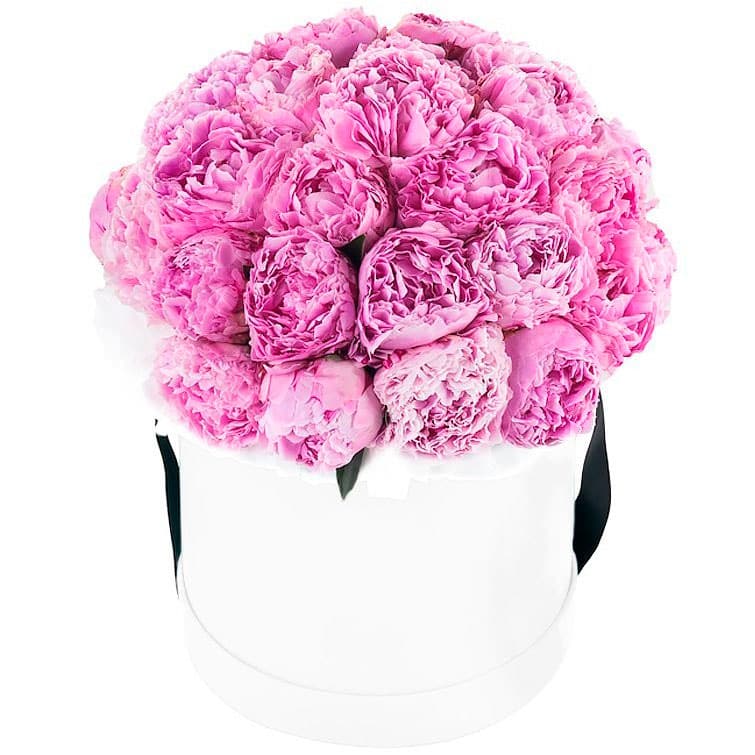 Розовые пионы создают нежную и романтичную композицию, идеально подходящую для выражения чувств. Цветы размещены в элегантной белой шляпной коробке, что придаёт им особый шарм. Возможны варианты оформления в бархатной или атласной коробке. Прекрасный подарок для любимой на годовщину или день рождения.